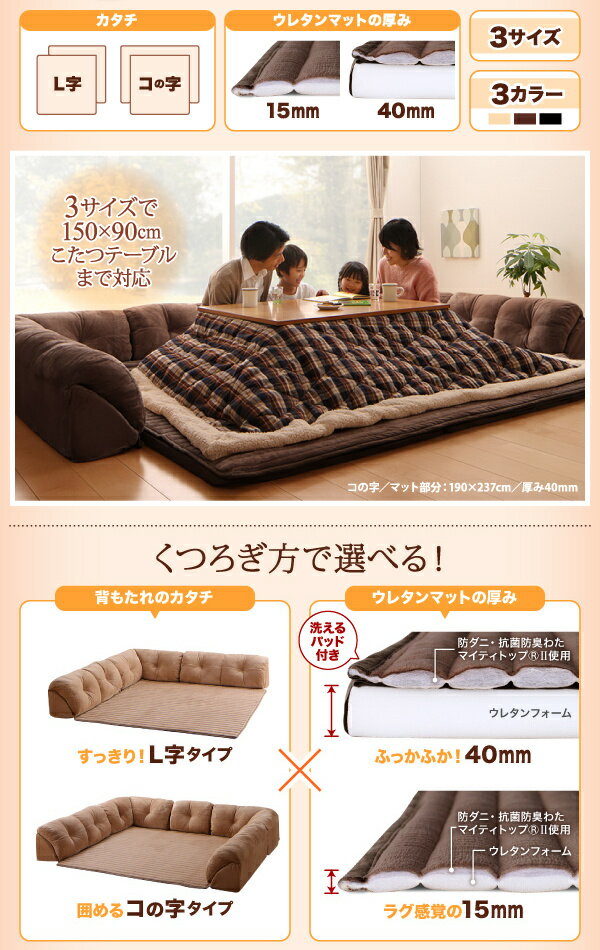 キーワードフロアコーナーソファ フロアソファ ローソファ ロータイプ バリエーション ▼こたつに合わせるフロアコーナーソファ ふわふわマイクロファイバータイプ 防ダニ・抗菌防臭機能付 ●L字 マット部分サイズ:142×142cm 厚さ15mm ●L字 マット部分サイズ:142×142cm 厚さ40mm ●L字 マット部分サイズ:190×190cm 厚さ15mm ●L字 マット部分サイズ:190×190cm 厚さ40mm ●L字 マット部分サイズ:190×237cm 厚さ15mm ●L字 マット部分サイズ:190×237cm 厚さ40mm ●コの字 マット部分サイズ:142×142cm 厚さ15mm ●コの字 マット部分サイズ:142×142cm 厚さ40mm ●コの字 マット部分サイズ:190×190cm 厚さ15mm ●コの字 マット部分サイズ:190×190cm 厚さ40mm ●コの字 マット部分サイズ:190×237cm 厚さ15mm ●コの字 マット部分サイズ:190×237cm 厚さ40mmこたつに合うフロアコーナーソファ ふわふわマイクロファイバータイプ コの字 マット部分サイズ:142×142cm 厚さ15mm▼こたつに合わせるフロアコーナーソファ ふわふわマイクロファイバータイプ 防ダニ・抗菌防臭機能付 ●L字 マット部分サイズ:142×142cm 厚さ15mm ●L字 マット部分サイズ:142×142cm 厚さ40mm ●L字 マット部分サイズ:190×190cm 厚さ15mm ●L字 マット部分サイズ:190×190cm 厚さ40mm ●L字 マット部分サイズ:190×237cm 厚さ15mm ●L字 マット部分サイズ:190×237cm 厚さ40mm ●コの字 マット部分サイズ:142×142cm 厚さ15mm ●コの字 マット部分サイズ:142×142cm 厚さ40mm ●コの字 マット部分サイズ:190×190cm 厚さ15mm ●コの字 マット部分サイズ:190×190cm 厚さ40mm ●コの字 マット部分サイズ:190×237cm 厚さ15mm ●コの字 マット部分サイズ:190×237cm 厚さ40mm